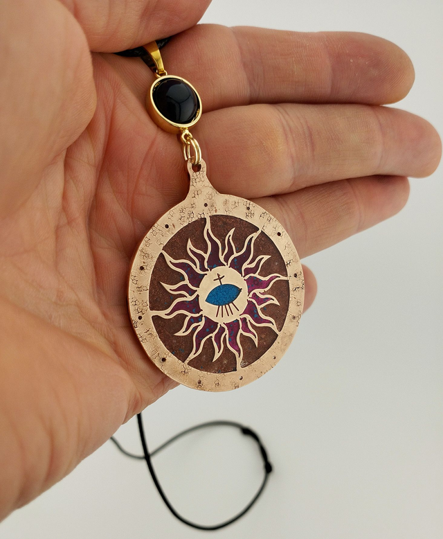 Talisman Soleil & Œil en Bronze – Protection et Équilibre Énergétique